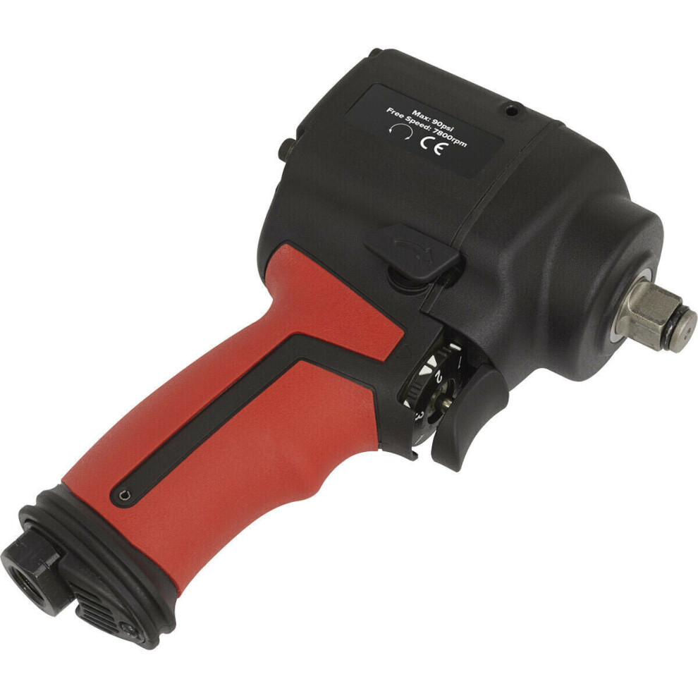Stubby Air Impact Wrench - 1/2 Inch Sq Drive - Twin Hammer - 3-Speed Selector